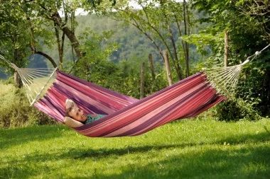 Keine riesige Hängematte, aber dennoch sehr bequem. Durch die extra langen Schnüre und die breiten Stoffbahnen bietet Tonga viel Komfort.