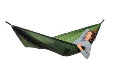 Die ultraleichte Adventure-Hängematte mit Einsteckfach für eine Isomatte und praktischem Moskitonetz. Die Hängematte ist mit einer dauerhaften Tanatex Antiinsektenimprägnierung behandelt (Netz und Stoff). Die Imprägnierung ist bis 50 Waschgänge haltbar, geruchsneutral, hautschonend und unbedenklich für Menschen. So schützt sie gegen Moskitos, Mücken, Zecken, Ameisen usw. Die Hängematte ist beidseitig, also mit und ohne Netz verwendbar. Zur Ausstattung gehören auch der Doppelreißverschluss zum bequemen Einstieg, die patentierten Spreizstäbe für das Netz, das Seil zum Netzabspannen sowie die Abtropfschnürchen (sie lassen das Regenwasser vor der Hängematte abtropfen).