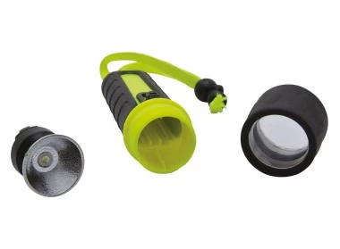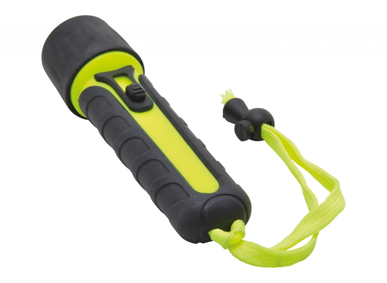 3W starke LED Tauchlampe mit einer Leuchtweite von bis zu 60 Metern. Die Lampe hat einen Magnetschalter und bietet die Schutzklasse IP68 (wasserdicht bis 100 m/10 ATM für max. 10 min.). Das Gehäuse ist aus gelbem PC-Kunststoff mit griffigem TPE Überzug. Eine Handschlaufe ist im Lieferumfang enthalten. Ideal für alle Outdoor Unternehmungen, da die Lampe gegen Schmutz und Wasser resistent ist und auch einen guten Schlagschutz bietet.