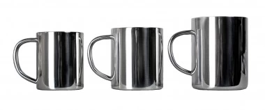 Die Thermobecher haben eine Doppelwandkonstruktion und einen eleganten und griffgünstigen Edelstahlgriff. Super poliert und in schönem Design.