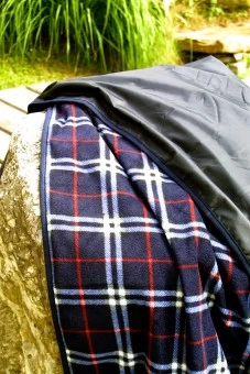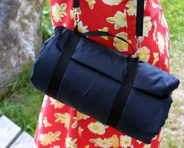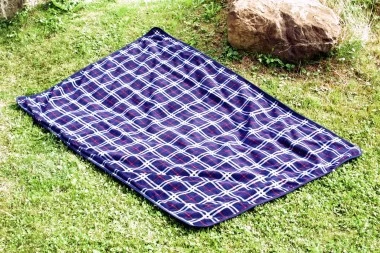 Praktische Decke für Picknick, Camping, Garten oder Auto. Die Oberseite ist im klassischen Karomuster. Die Unterseite ist strapazierfähig und abwaschbar jedoch nicht wasserdicht. Mit Trage-/Verschnallgurt.