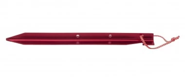 Standardhering für härtere Böden und etwas steinigeren Untergrund. In gut sichtbarer roter Ausführung aus Aluminium. T-Form mit Schlaufe zum einfachen Herausziehen des Herings. Zusätzlich hat der Hering auch noch Bohrungen zur Fixierung von Schnüren. Sehr gut verarbeitet. Professionelles Finish.
