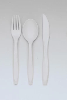 Stabiles, bruchfestes und robustes Besteck aus Duracon® mit geringem Gewicht. Komplettset mit Löffel, Messer und Gabel.