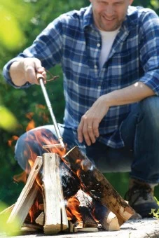 Stabiler, verchromter und teleskopierbarer Feuerhaken. Der Holzgriff bleibt kühl und ist angenehm zu greifen. Mit dem Haken kontrollieren Sie aus der Distanz und ganz bequem die Glut oder das Feuer – ob beim Camping oder an der heimischen Feuerstelle.