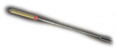 Ausziehbar bis 86 cm, erlaubt diese Gabel das Grillen ohne verbrannte Finger und versengte Haare. Mit dem Holzgriff hat man die Gabel gut in der Hand (isoliert auch gut) und kann, mittels Daumenrad, das Grillgut bequem drehen.