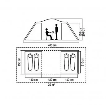 - Innenmaß: 2 x (140 x 210 cm), Höhe 160 cm