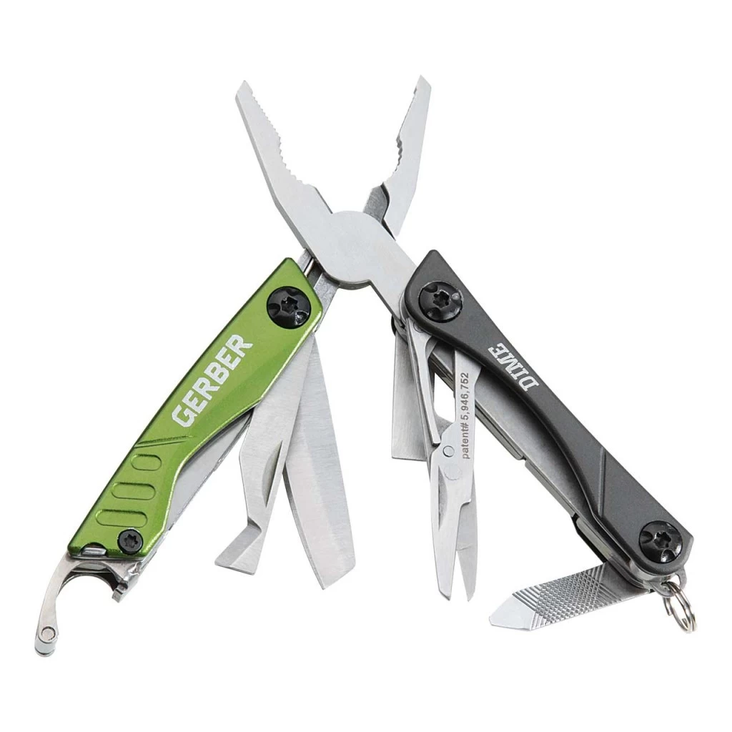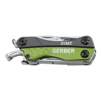 Ganz in schwarz präsentiert sich das DIME BLACK Mini-Tool – ideal für den Taktikbereich. Das kleine, praktische Schlüsselanhänger-Tool von Gerber ist im geschlossenen Zustand gerade einmal 7 cm lang. Neben einer Zange mit Drahtschneider verbirgt das Multitool in seinem Inneren zahlreiche weitere Werkzeuge wie Schere, Messer, Flaschenöffner, Feile, Pinzette und Schraubendreher. Das Tool besitzt einen Schlüsselring zur Befestigung z.B. an der Ausrüstung oder am Schlüsselbund.