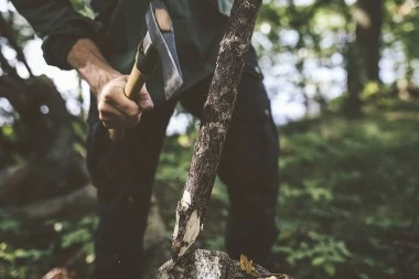 Die Gränsfors Outdoor-Axt wurde mit Unterstützung des Überlebenskünstlers Lars Fält entwickelt und eignet sich optimal für alle, die in der Natur unterwegs sind und eine Axt für verschiedene Anwendungen benötigen. Trotz ihres geringen Gewichts kann sie durch ihren relativ langen Stiel und den schweren, länglichen Kopf zum Fällen von Bäumen verwendet werden. Die Axt ist auch hervorragend zum Entasten von Bäumen. Der Stiel verfügt über einen Stielschutz aus Stahl unterhalb des Kopfes, so dass die Axt auch für einfache Spaltarbeiten eingesetzt werden kann. Sie lässt sich auch als großes Messer verwenden.