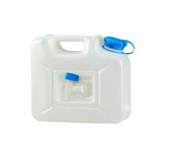 Stabiler Kanister für den vielseitigen Einsatz bei Outdoor, Camping und Freizeit. Aus lebensmittelbeständigem Polyethylen (HD-PE) hergestellt ist er ideal für Trinkwasser und platzsparend stapelbar. Mit UV-Schutz für lange Lebensdauer. Praktisches Feature ist der sicher im Kanisterkörper integrierte Ablasshahn, welcher zur bequemen Nutzung in das Gewinde (Breitgewinde 22 mm) auf der Schmalseite des Kanisters passt (sonst mit einem Stopfen verschlossen).