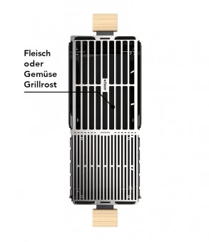 Zwei speziell designte Edelstahlroste für Gemüse oder Fleisch sorgen für perfekte Grillergebnisse. Durch den unterschiedlichen Abstand der Streben, wird eine optimale Grilltemeratur für z.B Steaks erreicht und durch den Gemüse Rost fällt kleines Grillgut nicht mehr hindurch.