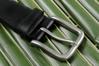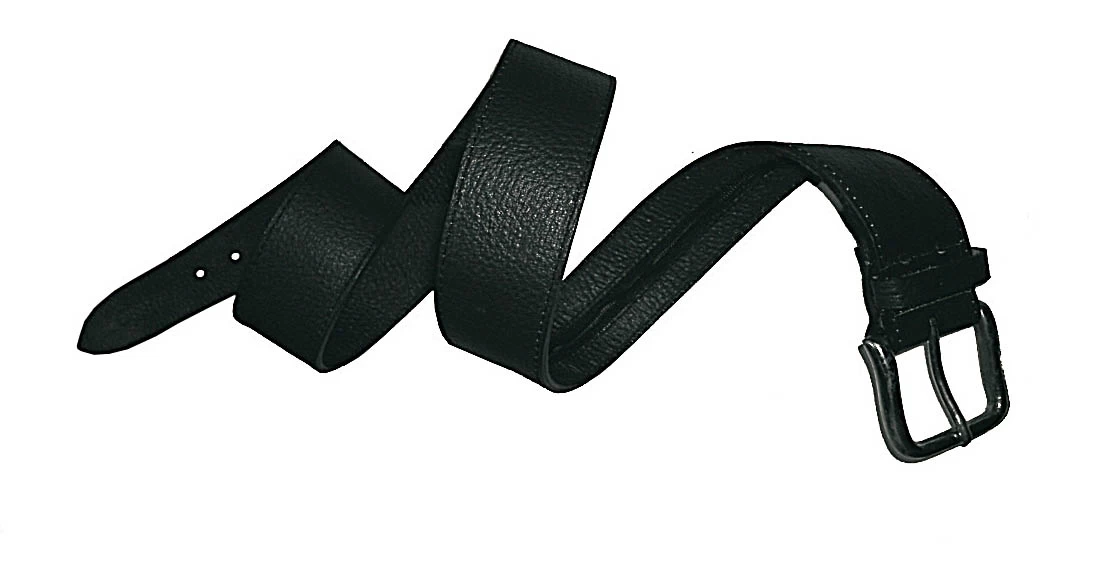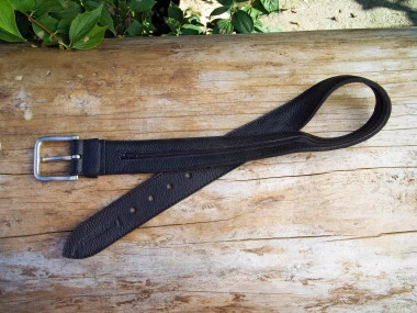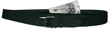 Ein Geldgürtel aus festem, gemasertem Vollrindleder. Breit genug, um kleine Scheine nur einmal gefaltet einzustecken. Schön gestaltete Gürtelschnalle aus Messing, vernickelt, in robuster Ausführung. Sicherlich ein neuer ‚Klassiker‘ unter den Geldgürteln. Breite 42 mm. Die Gürtellänge wird stets vom Dorn bis zum mittleren Loch angegeben.