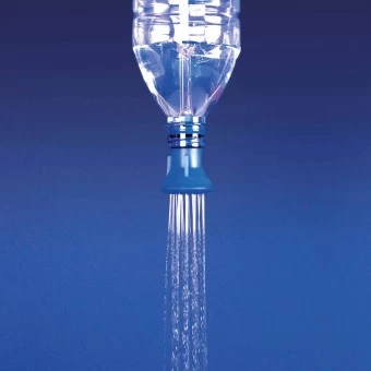 Duschkopf, der sich in die meisten Standard-Wasserflaschen einschrauben lässt. Die Fließgeschwindigkeit wird durch den Kopf herabgesetzt, so das man mit einer 2 Literflasche über zwei Minuten duschen kann. Inklusive einfacher Aufhängung und Packsäckchen.