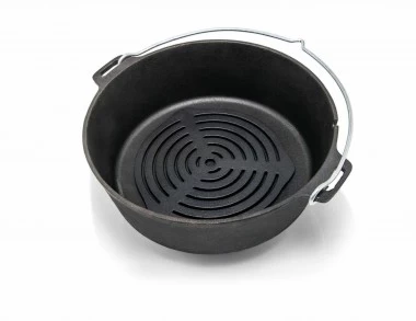 Der Petromax Einsatz aus massivem Gusseisen sorgt für eine erstklassige Hitzeverteilung und ermöglicht das Backen und Garen in den Feuertöpfen (optimale Passform in ft6 und ft9) ohne Anbrennen. Auf drei Noppen steht der Gussrost-Einsatz sicher im Feuer, auf dem Tisch als Untersetzer. Beim direkten Grillen in der Glut brutzelt er das perfekte Grillmuster ins Fleisch.