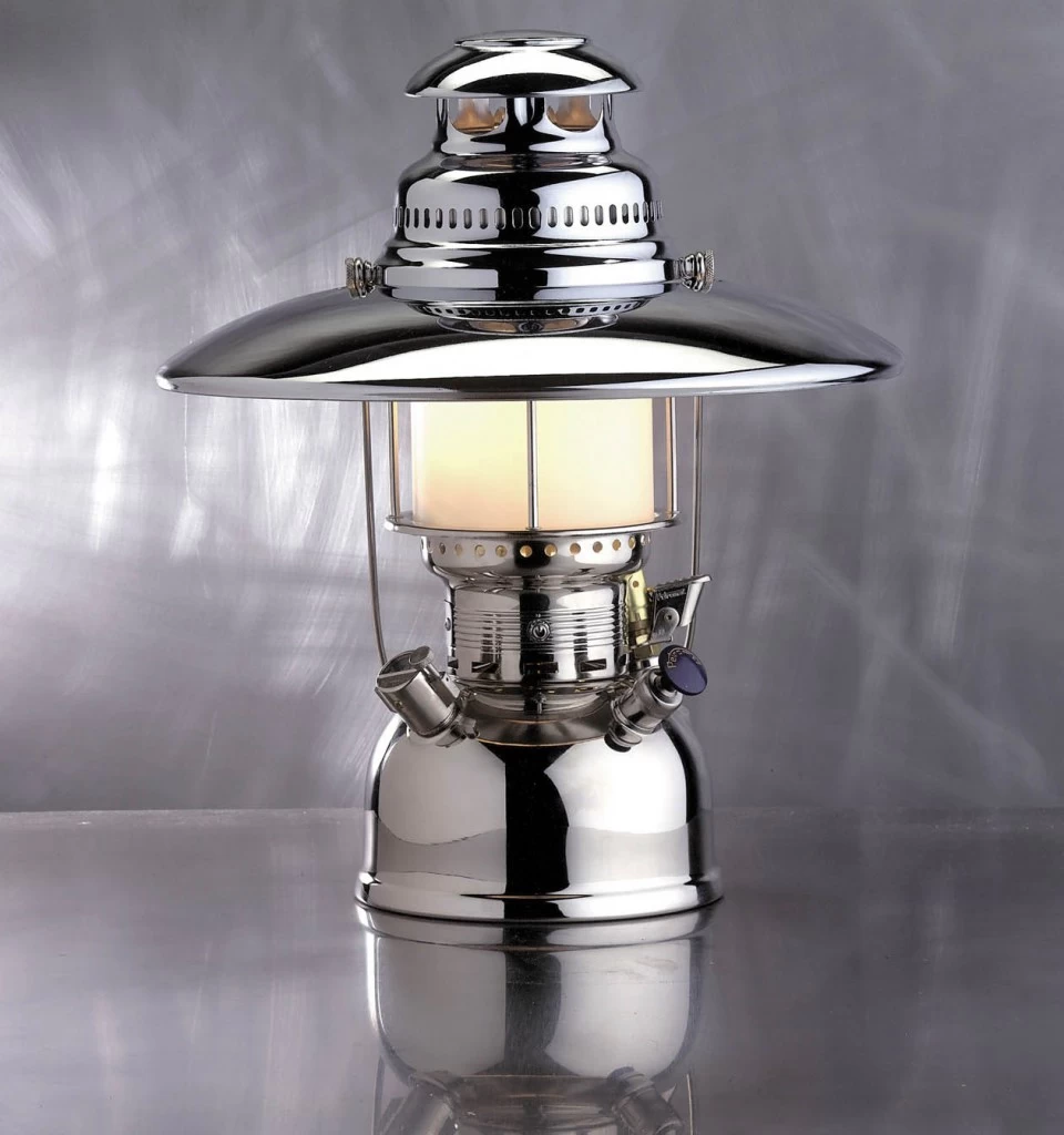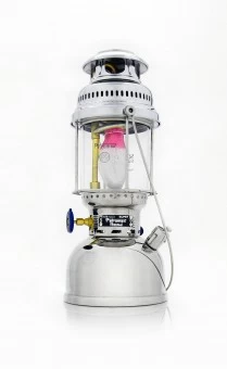 Die sehr bekannte, beliebte und vielfach bewährte Original Petromax® Petroleum-Starklichtlampe. Gefertigt aus hochwertigem Messing mit chromglänzender Nickelbeschichtung in hervorragender Verarbeitung! Die Lampe leuchtet ca. 8 Stunden mit einer Füllung bei einem extrem niedrigen Verbrauch von nur 0,12 l / Std. 400 W = 500 HK Lichtleistung. Lieferung ohne Reflektor! Jede Lampe wird gemäß den Bestimmungen deutscher Behörden auf Sicherheit geprüft. Mit ausführlicher deutscher Bedienungsanleitung.