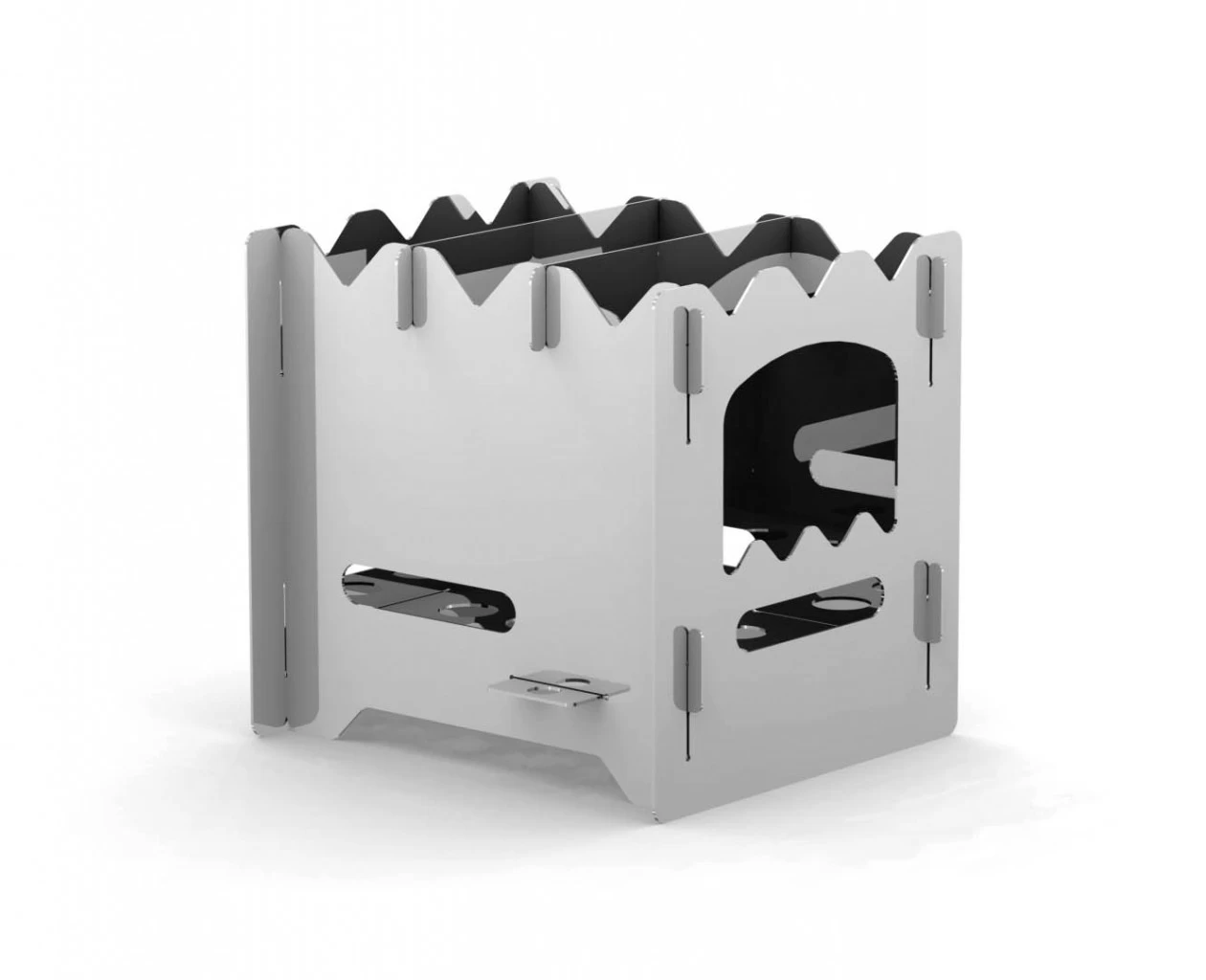 Ein leichter und effizienter Outdoorkocher für unterwegs, der in einer robusten Transporttasche aus Ripstop-Gewebe geliefert wird. Weil seine Konstruktion den Kamineffekt optimal ausnutzt, werden Zweige und Äste sparsam, aber dennoch enorm heiß verbrannt. Der aus Edelstahl gefertigte Hobo-Kocher ist zudem äußerst widerstandsfähig: Töpfe jeder Größe und jeden Gewichts trägt er sicher. Zusammengebaut wird der Kocher mit einem simplen Stecksystem, wodurch sich die Einzelteile optimal in der flachen Tasche verstauen lassen. Mit einem Gewicht von nur 590 g (inkl. Tasche) und seinem schmalen Packmaß passt der Hobo-Kocher in jeden Trekkingrucksack.