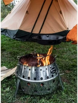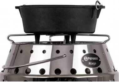 Mit dem Kochkreuz gibt es jetzt eine kompakte Zusatzausrüstung für die universelle Grill- und Feuerstelle, den Petromax Atago, die neue Kombinationen ermöglicht. Das speziell geformte Edelstahlgestell wird in die Atagoöffnung eingesetzt und liegt kippsicher auf dem oberen Rand auf. Auf der robusten Arbeitsfläche können so alle Petromax Feuertöpfe, -pfannen, Sonderformen und Kannen eingesetzt werden. Großer Kundenvorteil: alle Feuertopfmodelle mit Standfüßen passen ideal zwischen die Kreuzstreben und auch die Deckel lassen sich Dank Henkelaussparung problemlos umgedreht als Bratpfanne nutzen. Zusätzlich dient das Kochkreuz auch als hitzebeständiger Untersetzer auf z. B. Tischoberflächen oder als kompakte Kochstelle, indem es direkt in der Glut positioniert wird.