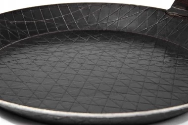 Schwere schmiedeeiserne Pfanne mit exzellenter Wärmeleitfähigkeit. Für das perfekte Pfannengericht unter freiem Himmel oder in der eigenen Küche. Liefern auf allen Herdarten (Gas-, Elektro- und Induktionsofen), Kochern und auf offenem Feuer ein geschmacklich einzigartiges Bratergebnis! Bereits mit dem ersten Gebrauch bildet sich durch die spezielle Oberflächenstruktur der Pfanne eine versiegelnde Schutzschicht. Diese Patina entwickelt sich mit jedem Gebrauch weiter und steigert die hervorragende Qualität der robusten Pfanne. So wird diese Pfanne zum unverzichtbaren Begleiter. Nicht spülmaschinengeeignet.