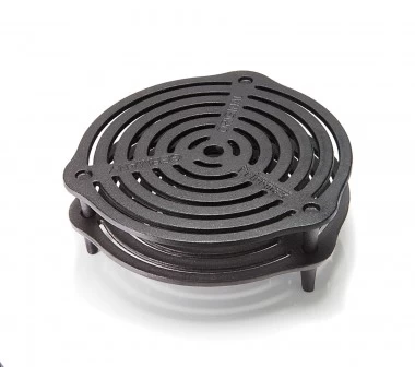 Mit dem Petromax Stapelrost aus massivem Gusseisen gelingen Backen und Garen in den Feuertöpfen (optimale Passform in ft6 und ft9) ohne Anbrennen, denn die Füße schaffen einen großzügigen Abstand. Da der Rost auf der Oberseite kleine Vertiefungen hat, lassen sich mehrere Stapelroste perfekt übereinander stellen: Backen, Dünsten und Dampfgaren wird auf mehreren Ebenen möglich. Dank der drei Füße mit einer Länge von jeweils 4,3 cm steht der Stapelrost auch sicher im Feuer oder auf dem Tisch als Untersetzer. Beim Grillen in der Glut brutzelt er das perfekte Grillmuster ins Fleisch oder dient auch hier als stabile Standfläche für Teekessel oder Perkolator.