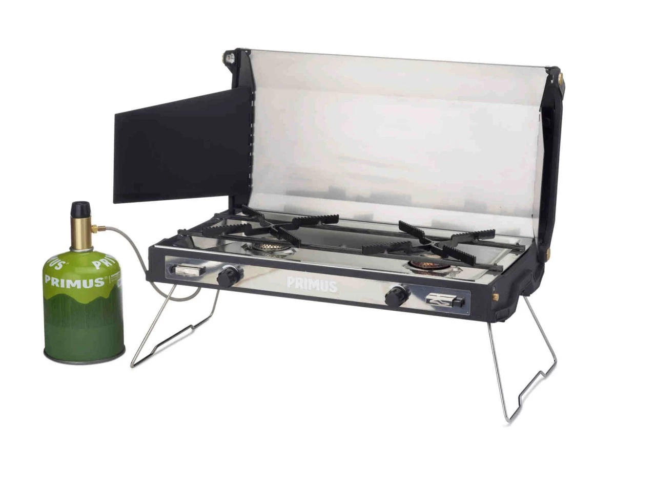 Der ‚Tupike‘ Kocher mit zwei Brennern ermöglicht ‚echtes‘ Kochen und ist dennoch leicht und kompakt genug, um sich problemlos transportieren zu lassen. Mit seinem Gehäuse aus Edelstahl, den Eichenholzeinlagen und den Messingelementen werden beim ‚Tupike‘ langlebige Materialien verwendet. Mit jedem Abenteuer bekommt er Patina und sieht besser aus. Die Eichenholzeinlagen machen ihn robust, langlebig und schützen vor Abnutzungserscheinungen. Der Kocher verfügt über eine Grillplatte mit Antihaftbeschichtung, die einfach zu verwenden und problemlos zu reinigen ist. Die Grillplatte besteht aus Aluminium-Druckguss, das sorgt für eine gute Wärmeverteilung. Der ‚Tupike‘ kann mit Ventilgaskartuschen benutzt werden oder (mit Adapterset 790566, optional erhältlich) auch mit den üblichen Propan- und Butangasflaschen. Der Adapter dient dann zugleich als Druckregulator mit 1 Bar (dann ist kein weiterer Druckregler nötig).