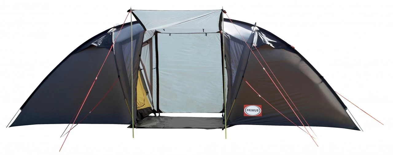Primus ‚Bifrost H4‘ und ‚H6‘ sind große Zelte mit Schlafplätzen für 4 bzw. 6 Personen und Stehhöhe für Erwachsene. Zwischen den beiden Schlafinnenzelten befindet sich ein großzügiger Wohnbereich. Ventilationsöffnungen und Mückennetz sorgen für gute Belüftung. Das Aluminiumgestänge sorgt für hohe Stabilität, die Farbkodierung der Stangen vereinfacht das Aufstellen. Geeignet für viele Einsatzbereiche wie Camping, Paddeln, Segeln oder auch im Garten. Das Zelt ist mit Sturmleinen ausgestattet und verfügt über blickdichte Fenster und einen Boden, der einfach zwischen den beiden Schlafbereichen eingeknöpft wird. Zudem sind die Zelte mit Aufstellstangen ausgestattet, so dass der Eingangsbereich als Regenschutz oder als Schattenspender dienen kann.