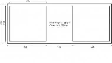 - Innen: 235 x (210 x 220) + 145 + (210 x 220) Höhe 165 cm