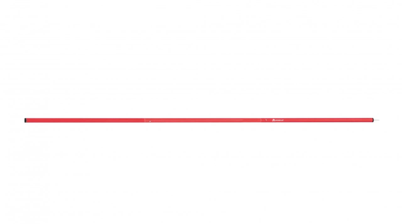 Aufstellstange aus Aluminium mit ‚Press-Button‘-Verbindern. Werden einfach zusammengesteckt und verbinden sich dabei. Zum Öffnen nur den Knopf drücken – fertig. Die Länge kann durch den Einsatz der Elemente variiert werden. Stabil, mit rutschfestem Bodenstück und Dorn an der Spitze.