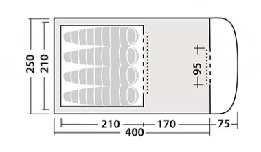 - Boden: 75D Polyester Taffeta 185T, PU besch., Vorraumboden PE eingenäht, WS 10.000 mm