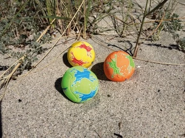 Drei Minibälle aus Neopren zum Werfen, Fangen, Jonglieren und Kicken. Die Bälle sind doppelwandig, mit Kunststoffgranulat (PE) gefüllt und sehr hochwertig verarbeitet. Ideal als Spielzeug für Groß und Klein auf Touren, im Garten oder am Strand. Im Netz und schwimmfähig.