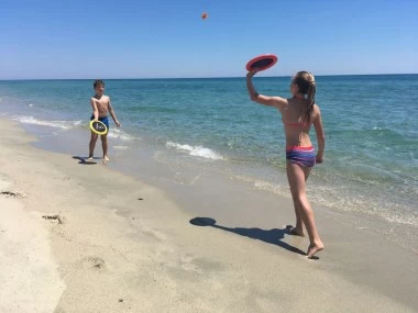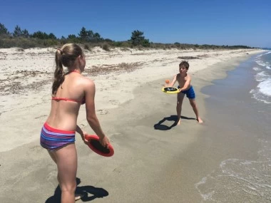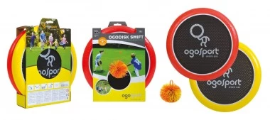Tolles Spiel für jede Altersklasse! Mit den beiden Ogoscheiben kann der spezielle Soft-Ball hin- und hergeschlagen werden. Der Ball ist weich genug auch für drinnen, bietet unbegrenzte Spielmöglichkeiten und rollt nicht auf die Straße. Die elastische Netzbespannung der Scheiben gibt dem Ball dabei eine unerwartete Dynamik. Der Rand der Scheiben ist mit einem stabilen, aber leichten Schaum gefüllt und kann auch als Wurfscheibe (Frisbee) genutzt werden. Sie sind sehr verletzungssicher und schwimmen auch. Inklusive Anleitung.