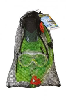 Das Schnorchel Set ist mit einem Spritzwasserschutz (Semi-Dry Top), Mundstück aus Silikon, Ausblasventil, flexibles Schnorchelteil und verstellbaren Easy Clip am Schnorchelhalter ausgestattet. Die Brille besteht aus einem Sicherheitsglas, Silikon-Maskenkörper, Silikon-Kopfband und einem leicht einstellbaren Schnallensystem zum Verstellen des Kopfbands. Die Flossen mit offenem Fußteil haben ein verstellbares Schnallensystem für mehrere Schuhgrößen. Anatomisch geformtes Fußteil,mit einem kurzen Flossenblatt. Alles verpackt in Netztasche zum Transport und Austrocknen.