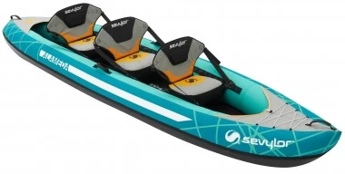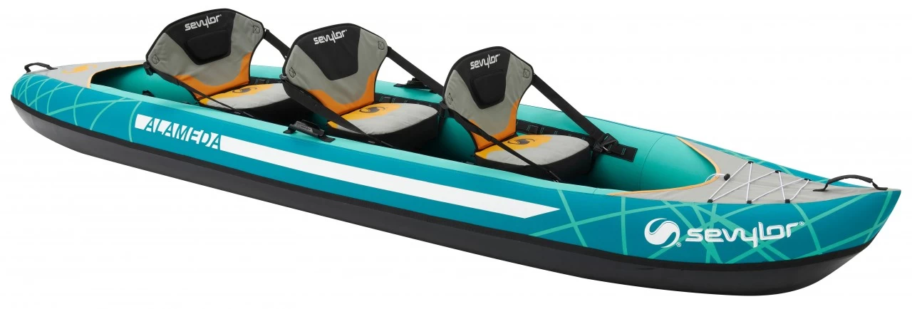 Das sportliche ‚Alameda‘ tritt in große Fußstapfen seines Vorgängers, des Hudson. Es steht ihm in nichts nach und bringt innovative, neue Features. Ob Familientour entlang der Küste oder mit Freunden über den See – das ‚Alameda‘ ist die richtige Wahl. Es hat eine eher breite Form und entsprechend gute Stabilität. Mit dem ‚Easy Inflation System‘ werden in der Premiumversion die drei Luftkammern bequem gleichzeitig aufgepumpt. Es gibt ein Lenzventil, Spritzdecken an Bug und Heck, am Bug Gummibänder für Gepäck sowie zwei bequeme Sitze mit gepolsterter Rückenlehne, großer Sitzfläche und innovativen, freischwebenden Sitzen. Sie entscheiden, ob Sie mit zwei oder drei Personen fahren möchten – die Sitze sind entnehmbar. Die vorgeformten Griffe an den Seiten fungieren gleichzeitig als Paddelhalter. Rundum gelungen und gut zu fahren.
