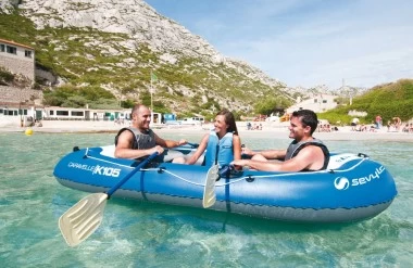 Der Klassiker auf dem Wasser. Seit Jahrzehnten haben sie ihren festen Platz: die Schlauchboote für Strand und See. Mit der Sevytest Druckkontrolle ausgestattet, einer Rundumleine, Tragegriffe für bequemen Transport und 2 Paar elastische Ruderdollen.