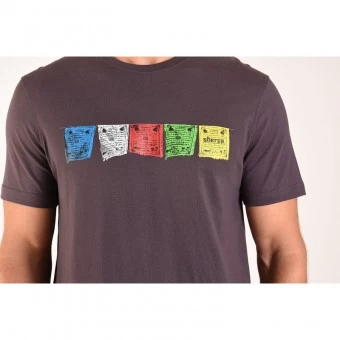 Dieses T-Shirt vermittelt einen Hauch von Nepal. Die flatternden Gebetsfahnen auf der Brust setzen den optischen Akzent bei diesem T-Shirt aus 100 % organischer Baumwolle. Das Motiv zählt in Kathmandu inzwischen zu den meist kopierten und unterstreicht den Erfolg dieses T-Shirts um so mehr. Gefertigt ist das T-Shirt aus 100 % Bio-Baumwolle, die einen sehr angenehmen Griff bietet. Eine Verstärkung in den Prayer-Flag-Farben am Kragen sorgt dafür, dass dieser stets in Form bleibt. Die am Ärmel platzierte stilisierte Gebetsfahne und der Unendliche Knoten, das Logo der Marke, sind Design-Elemente, die das junge Outdoor-Unternehmen aus Nepal in allen seinen Produkten einsetzt.
