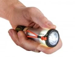 Kleine, handliche und variable Laterne und Taschenlampe in einem. Mit vier Leuchtmodi ausgestattet: hell, mittel, spar und Notblitzfunktion. Der gefrostete Aufsatz, welcher im Laternenmodus schönes, gleichmäßiges Licht spendet, wird zum Transport einfach über die Laterne geschoben. In dieser Stellung ist die ‚Clarus‘ auch als starke Taschenlampe zu nutzen. Zum Aufhängen im Zelt z. B. ist oben eine klappbare Öse angebracht.