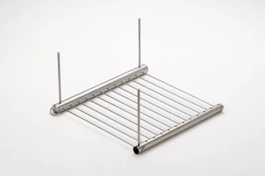 Ein Grill der Sonderklasse. Kann für sich in Anspruch nehmen, einer der kleinsten beim Transport zu sein. Handwerklich hervorragend gefertigt und komplett aus Edelstahl. Der ‚Grilliput‘ ist zusammengelegt nur 28,9 cm lang und an der breitesten Stelle nur 2,8 cm (Rohrdurchmesser ist 2,2 cm). Zum Aufbau werden die Bauteile aus dem Außenrohr entnommen, die Stäbe der Grillfläche in die Rohre eingelegt und fixiert. Füße einschrauben – fertig. Die Grillfläche ist dann 13,5 cm hoch und mit 25,5 x 23,2 cm ausreichend dimensioniert. Die 1. Wahl bei Reiseausrüstung mit Anspruch an minimales Packmaß in hervorragendem Finish. Auch als Geschenk ein echter Tipp.